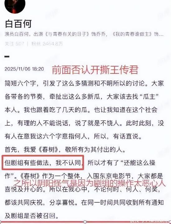 白百何一条只发了六个字,就引起了大家的热议,炮火都直指刚在剧里拿了影帝的王传君,结果女主竟然还比不过一个配角,这事儿真让人想不明白。