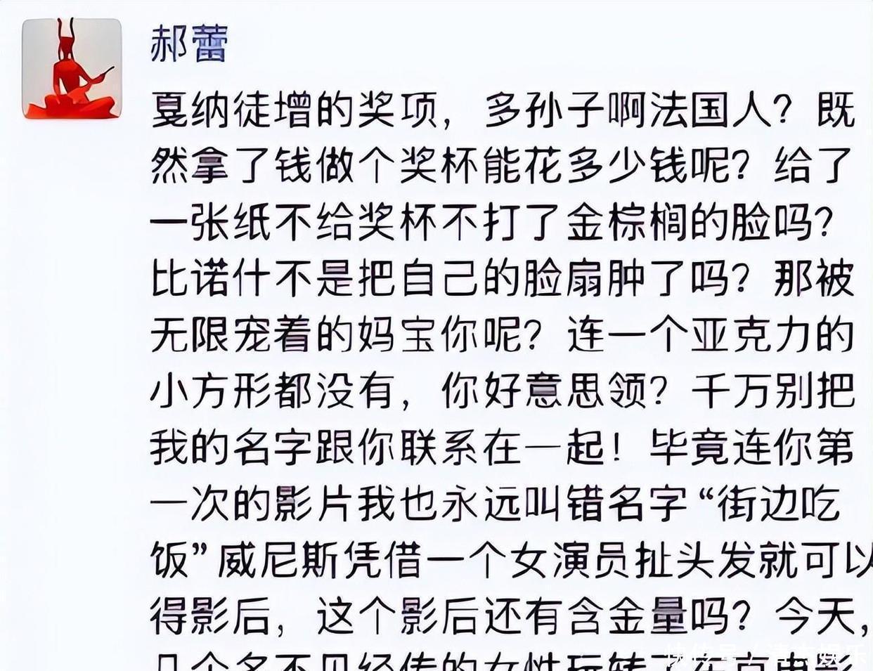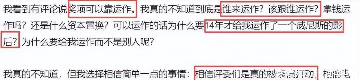 有人猜测郝蕾在朋友圈发了一篇小文章来表达不满,其中那句话一眼就能看出是在暗示辛芷蕾。毕竟,她前段时间刚刚拿了威尼斯影后,这关系是不是有点微妙啊?