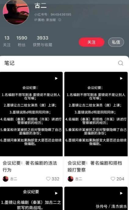 这位叫做“古二”的网友之所以总是出来曝料王导,就是因为王导用完他之后就把他踢开,还把自己的作品冠名给了编剧秦雯。